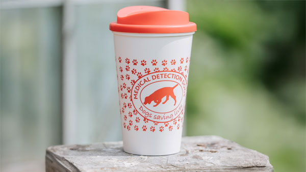 Reuseable Medical Detection Dogs branded cup with screw lid.